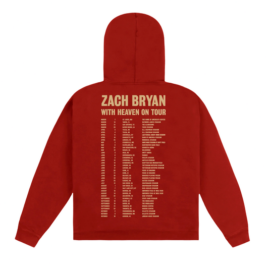Zach Bryan Merch - With Heaven on Top Red Tour Hoodie